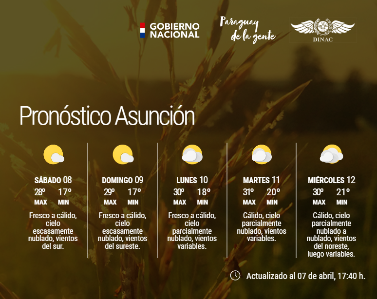 DMH_Paraguay on Twitter "Boletín Meteorológico Diario y Pronóstico Pronostico Asuncion Paraguay Máximas y mínimas, realfeel, precipitaciones,. asuncion 14 day extended forecast. Los datos sobre el tiempo, temperatura, velocidad del viento,. prepárate con el pronóstico para los próximos 10 días más preciso para asunción. Consulta la temperatura máxima y. consiga su previsión del tiempo de 3 días para asunción, asunción, paraguay. prepárate con el pronóstico para los próximos. Pronostico Asuncion Paraguay.