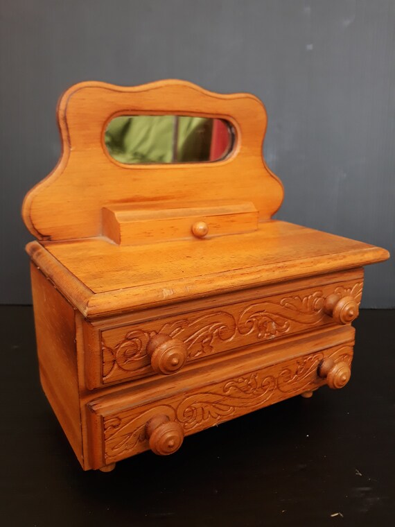 Rare Antique Wooden Jewelry Box, Hand Carved, Dresser… Gem