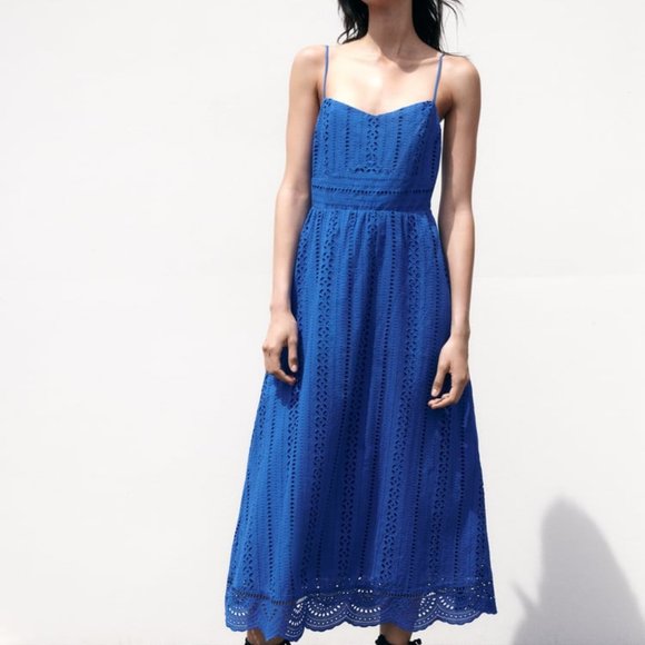 Zara Dresses Nwt Zara Openwork Embroidered Dress Bluish Ref 478624