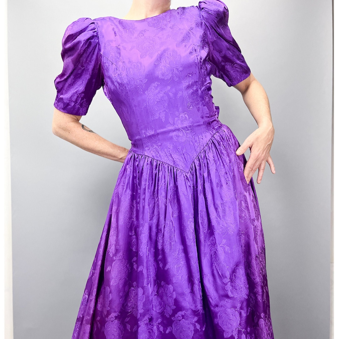 80's Prom Dress Vintage Purple Princess Sleeve Occasion Dress With Full