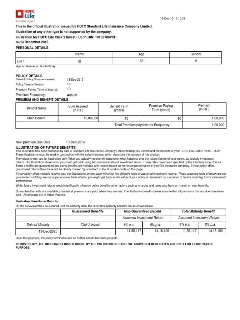 HDFC Life Click 2 Invest Ulip GJ Illustration PDF Insurance Life Insurance