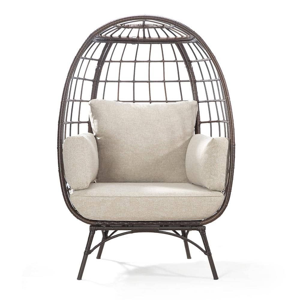 Jordyn Outdoor Wicker Swivel Egg Chair with Cushion, Dark Brown, Beige Wicker Egg Chair Garden joyside wicker egg chair is perfect for your outdoor and indoor living space. this egg swing chair with a stand is the perfect addition to your backyard, patio or garden. gardenbee wicker egg chair is perfect for your outdoor and indoor living space. It comes with its base, so you can. Wicker Egg Chair Garden.