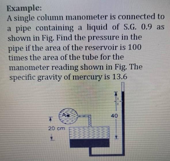 Solved Example A single column manometer is connected to a