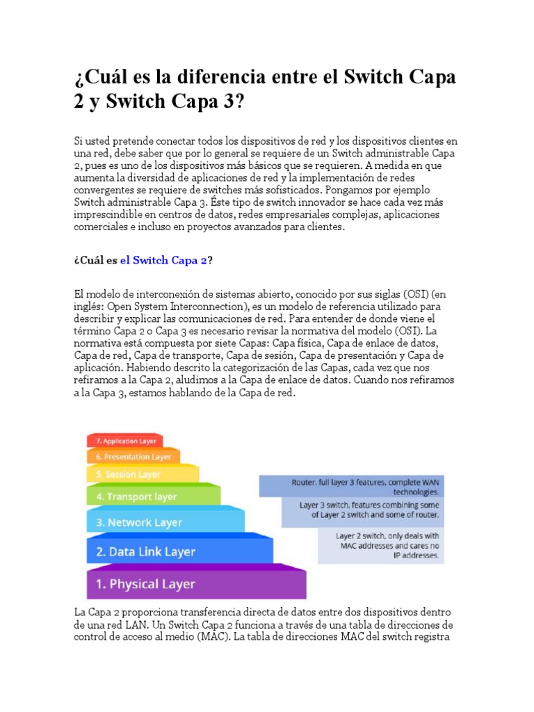 Cuál Es La Diferencia Entre El Switch Capa 2 y Switch Capa 3 PDF