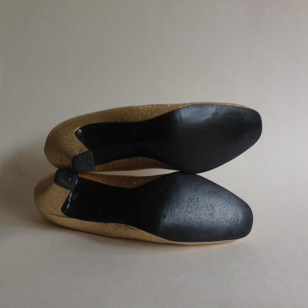 Dolcis Stardust Vintage 1960s Gold Larmé Fabric Court Shoe 3" Heel UK 3