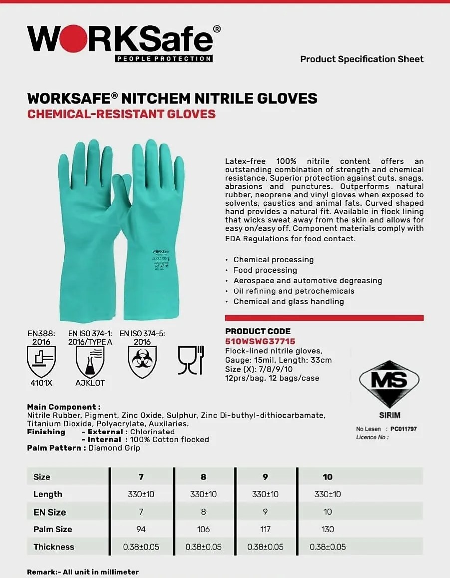 WORKSAFE 510WSWG37715SX NITRILE RUBBER 15MIL GLOVES ( With SIRIM