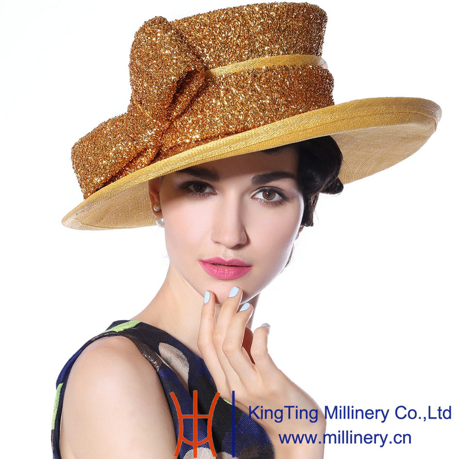 Gold Wide Brim Wholesale Hat Women Hat Newsboy Hat Church Hat Dress Sinamay Hat Linen Hat