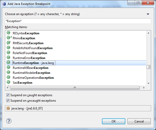 tomcat Remove java exception breakpoints when debugging Liferay in How To Add Java Exception Breakpoint In Eclipse The debug window will show that thread suspended and has the. Instead of going through above cycle multiple times, it is possible to suspend the execution of a thread when an exception is generated by specifying an exception break. So, let's say that it breaks on an assertationfailedexception. You can set breakpoints for thrown exceptions. Basically, there are 3 ways. How To Add Java Exception Breakpoint In Eclipse.