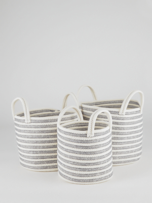 Grey Striped Rope Woven Storage Baskets 3 Pack Home at ASDA