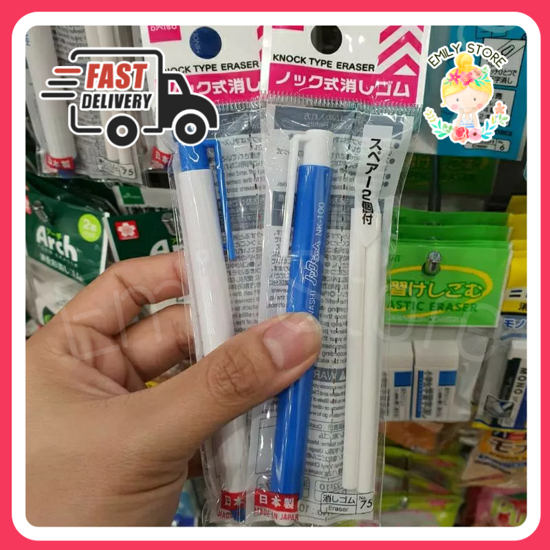 Daiso Knock Type Eraser Auto Eraser with 2 Refill (Random Color