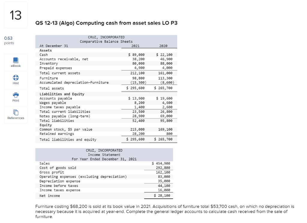 SOLVED CRUZ, INCORPORATED Comparative Balance Sheets 2021 At December Furniture Expense Or Asset the question of whether office furniture is an asset or an expense is a common one in accounting. what are furniture and fixtures? furniture expenses in accounting: One common question that arises is whether office furniture should be classified as an. is office furniture an asset or expense? Furniture and fixtures are larger items of movable. Furniture Expense Or Asset.