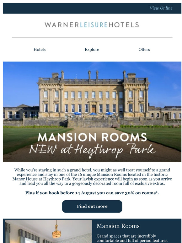 Warner Leisure Hotels Introducing our Mansion Rooms NEW at Heythrop