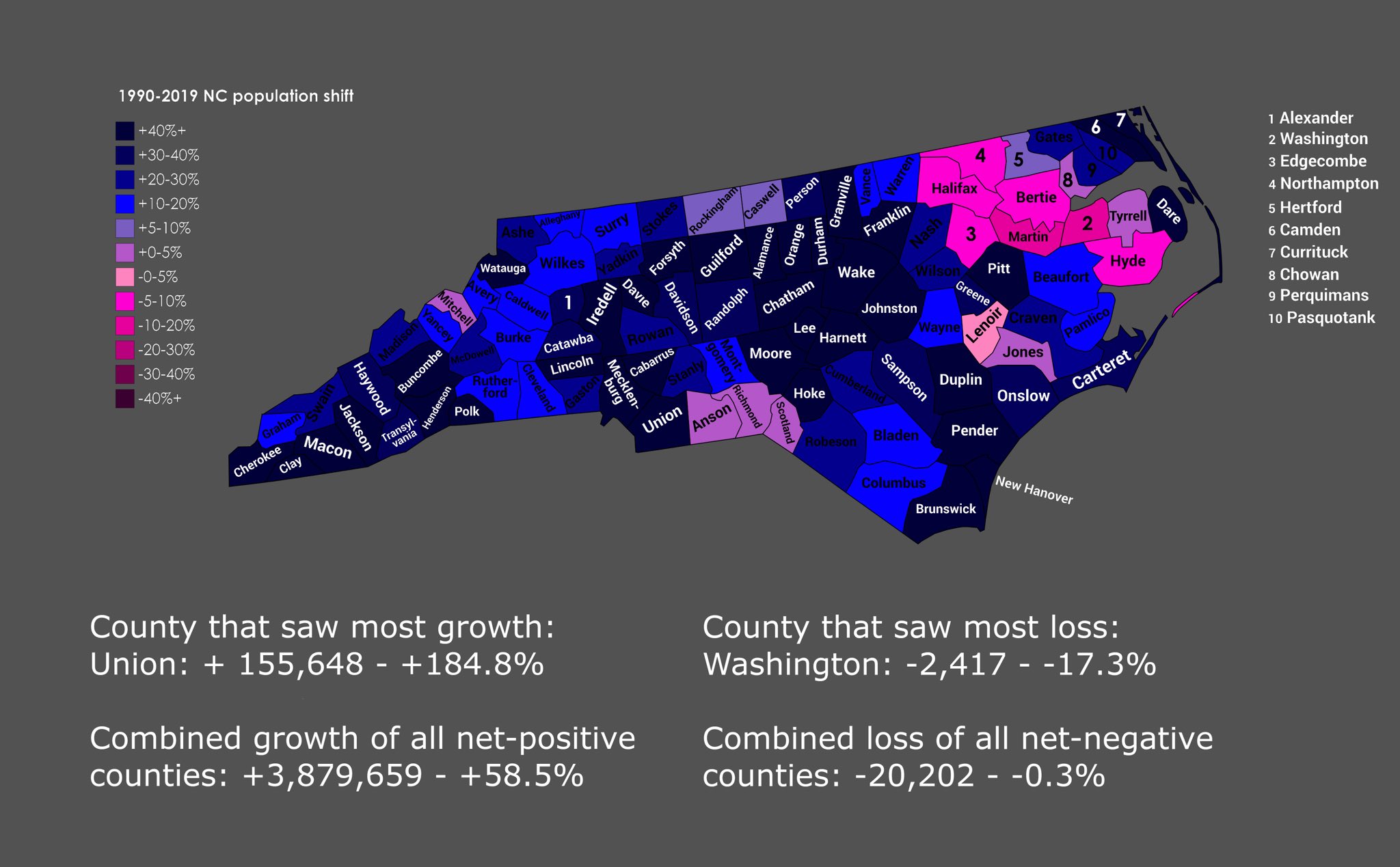 XNeon on Twitter "Here’s the 19902019 North Carolina population shift