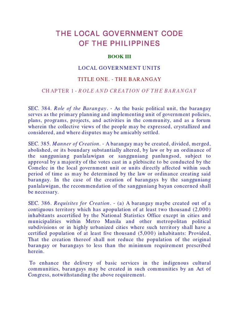 Local Government Code of 1991 Book 3 Local Government Units Mediation