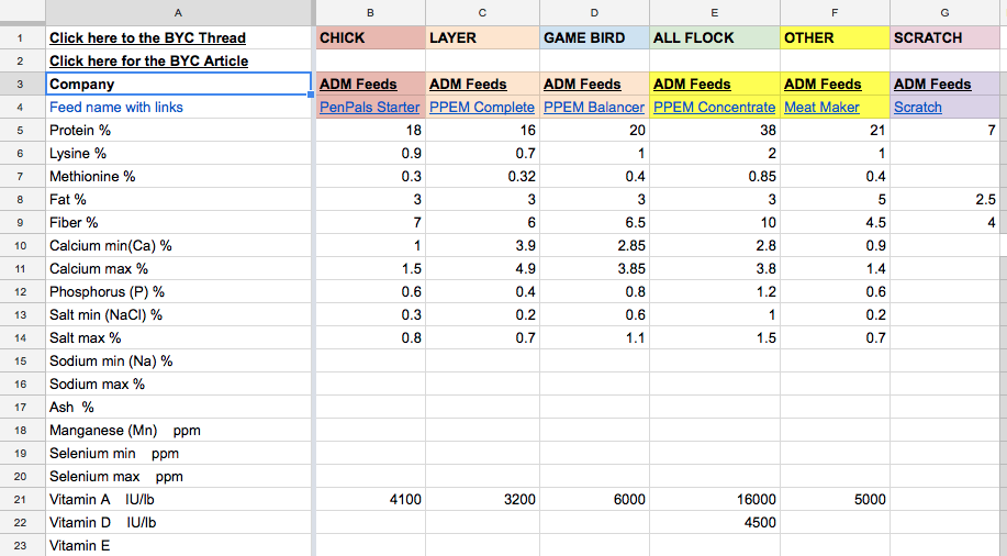 Poultry Feed Comparison Chart BackYard Chickens Learn How to Raise