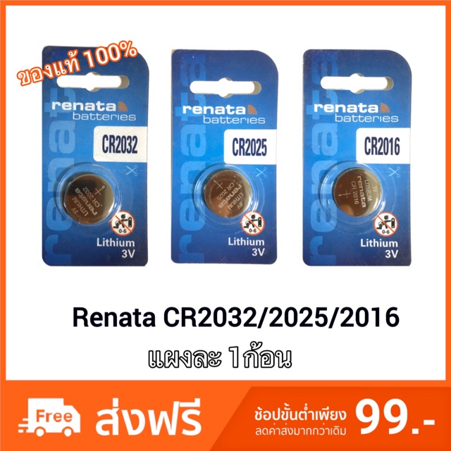 ถ่านกระดุม Renata Lithium 3V CR2032 /CR2025/CR2016 ของแท้100 แผงละ 1