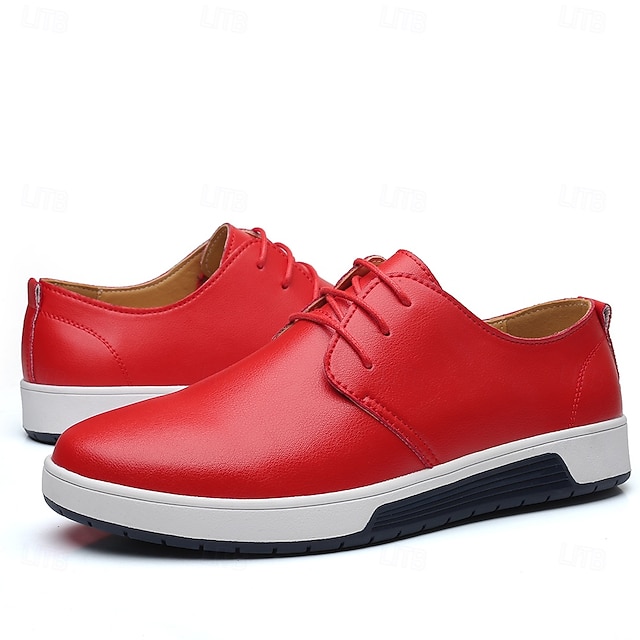 Men's Casual Orange Faux Leather Sneakers LaceUp Design, Lightweight