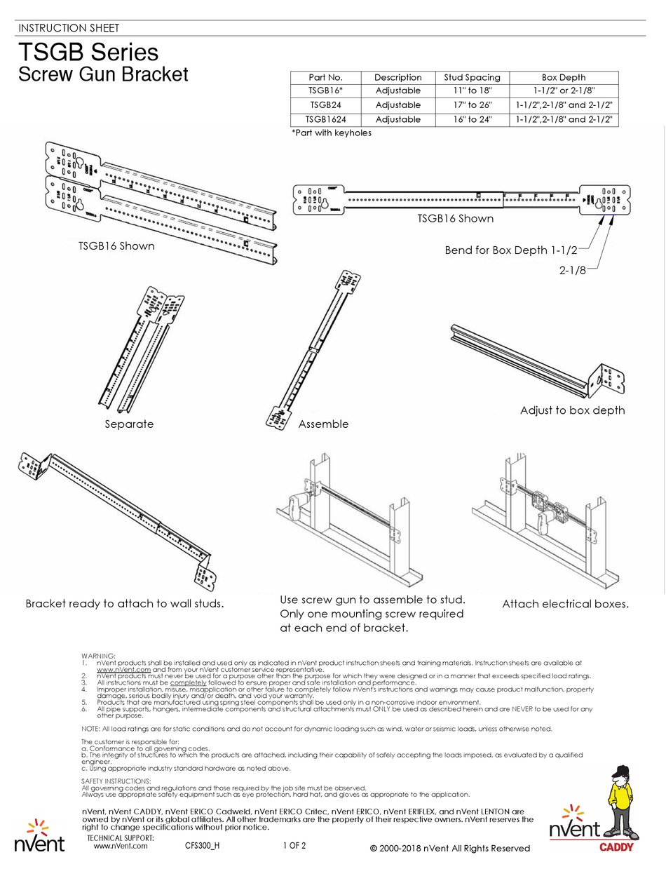 nVent ERICO TSGB1624S Screw Gun Box Bracket Werner Electric Tsgb Screw Gun Bracket Interlocking tab prevents accidental disassembly. Can be mounted to face or inside of stud. requires only a screw gun to install. Notched and marked for easy. Can be mounted to face or inside of stud. nvent caddy tsgb24 telescoping box bracket, 17 to 26 stud space. Need technical support or a quote? notched and marked for easy. Tsgb Screw Gun Bracket.