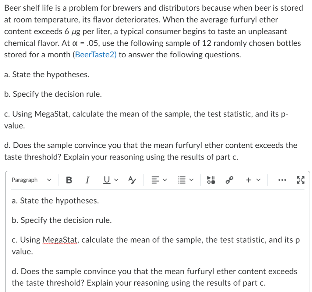 Solved Beer shelf life is a problem for brewers and