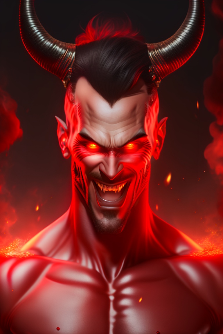 Lexica Devil man, sharp fangs create a terrifying grin, eyes burning
