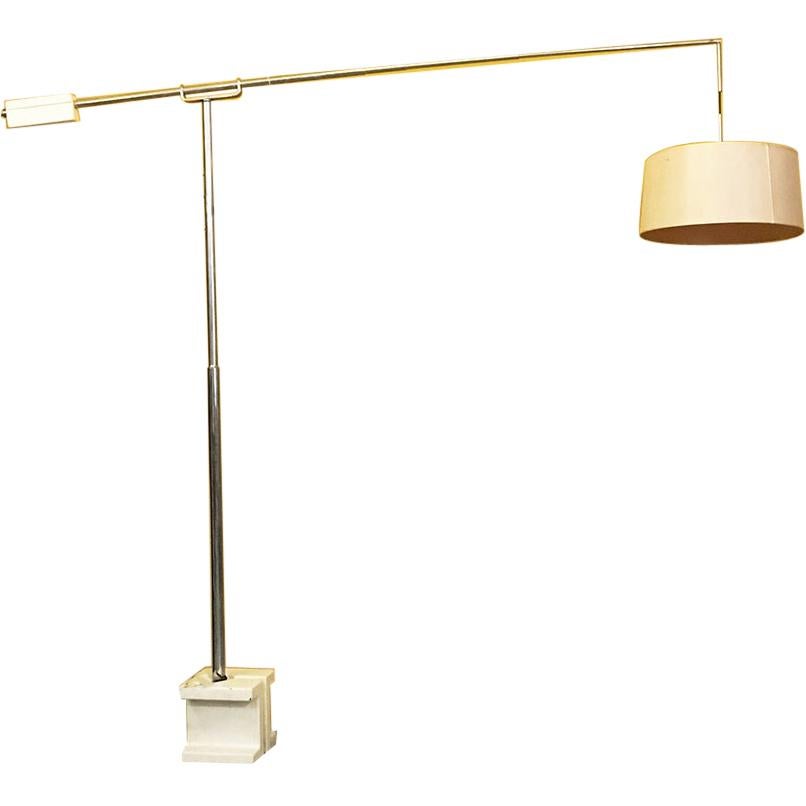 Italian Space Age Marble Base and Steel Structure Telescopic Floor Lamp