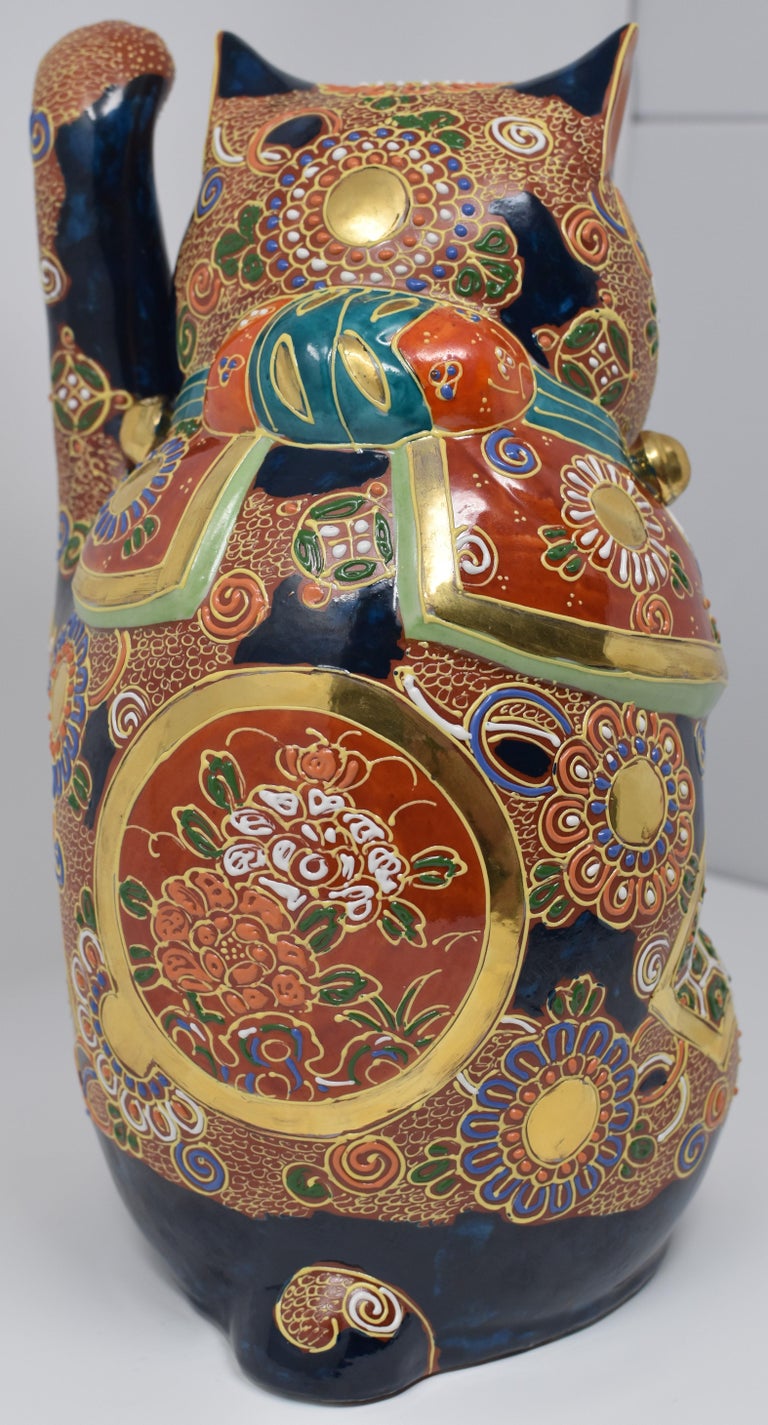 Large Japanese Contemporary Gilded HandPainted Kutani Porcelain Beckoning Cat at 1stDibs