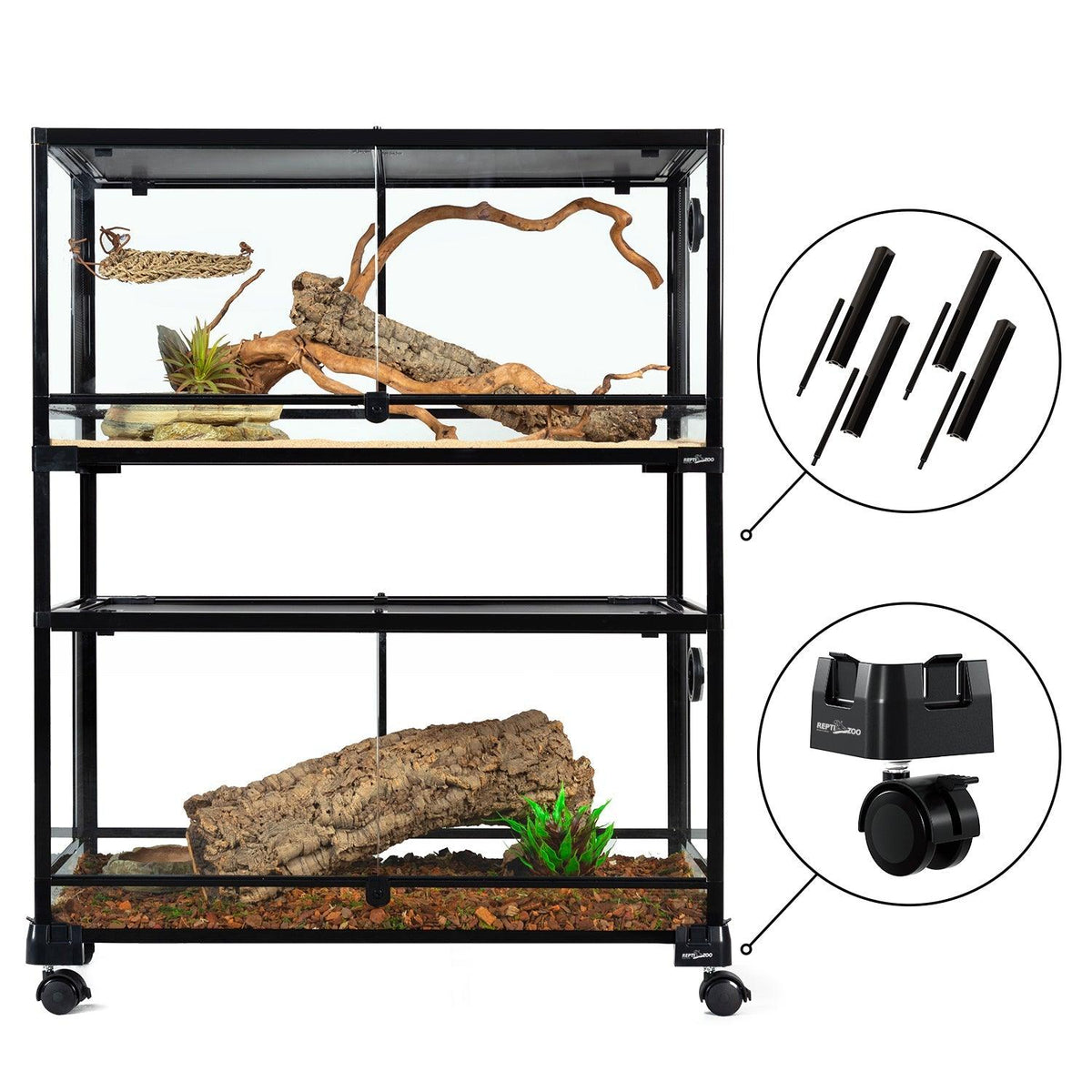 Reptile Cages Stackable Vision cages are arguably the best reptile cages on the market! 100 gallon double stacked reptile tank, 36 x 18 x 44 tall reptile terrarium, front opening, full vision, knock down, glass cage enclosure for. Our reptile cage system is completely stackable without buying expensive racking equipment. Vision cages are stackable, a feature loved by pet parents, zoos, and pet. Reptile Cages Stackable.