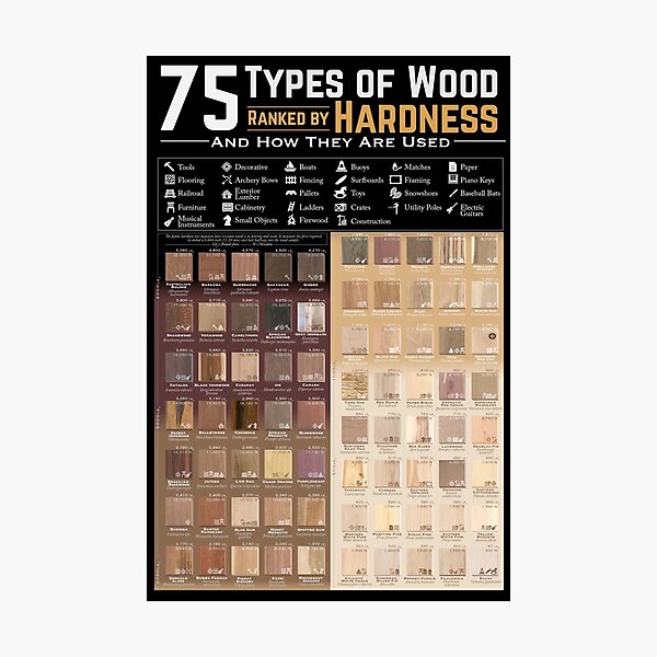 "75 types of wood ranked by hardness " Photographic Print for Sale by