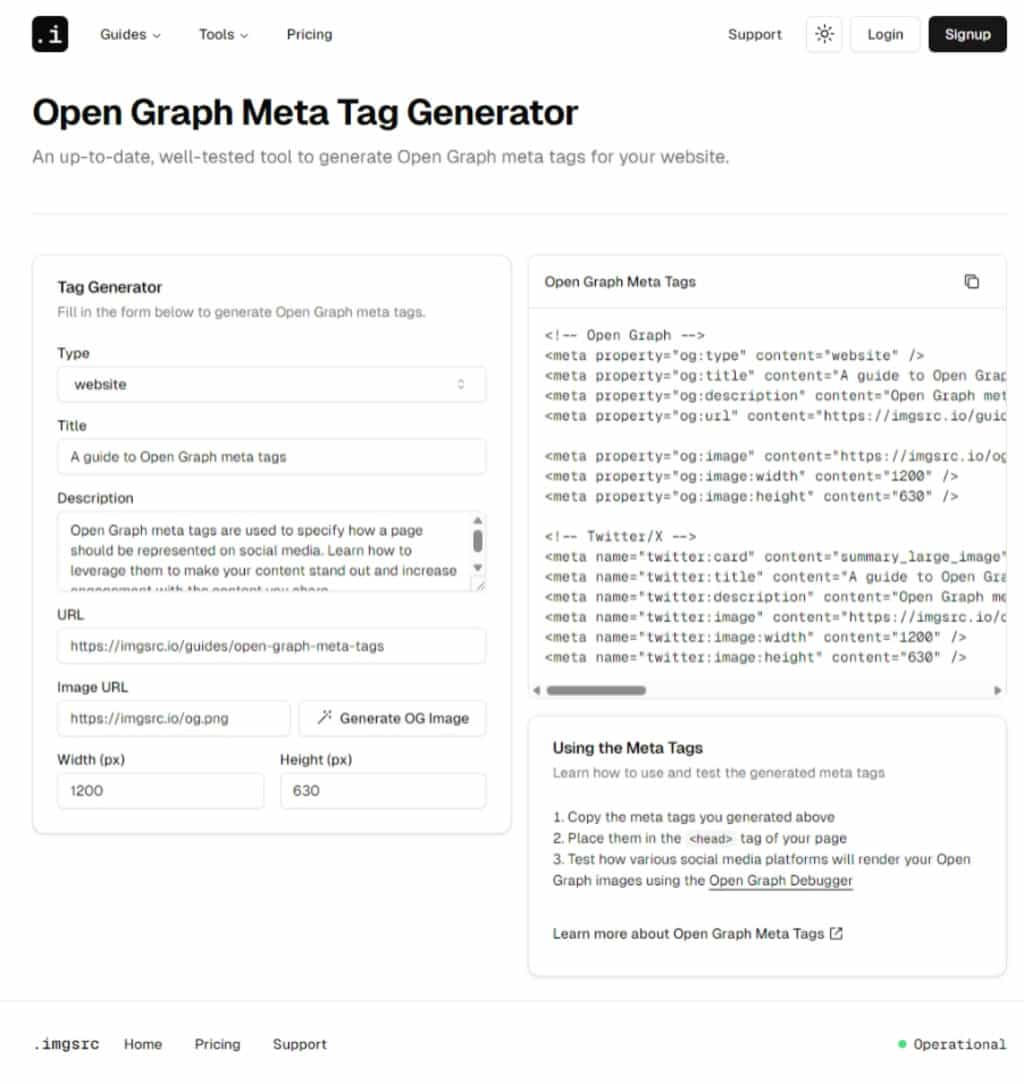 Meta Tags Generator Meta Tags Generator Preview Integrate open graph tags effortlessly using tools like opengraph.dev. Generate and insert the meta tags into your website's 'head' section to enhance your site's social. Meta tags is a tool to debug and generate meta tag code for any website. Tool to debug and validate meta tag code for any website. With meta tags you can edit and experiment with. Meta Tags Generator Preview.