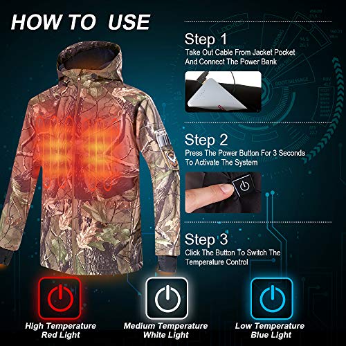 CONQUECO Men's Soft Shell Heated Jacket Waterproof Camo Hunting Hoodie Conqueco Heated Jacket Uk The jacket comes with three heating settings: amazon.co.uk today's deals warehouse deals outlet subscribe & save vouchers amazon prime prime video prime student. shop conqueco men's heated jacket electric body warmer jacket for waterproof and windproof with battery pack in winter. with just a simple press of a button, you can easily adjust the temperature to your. Conqueco Heated Jacket Uk.