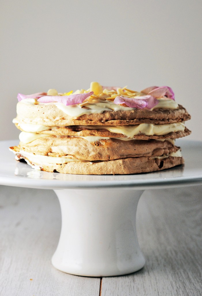 Almond Dacquoise with Rose & White Chocolate Filling {Grainfree