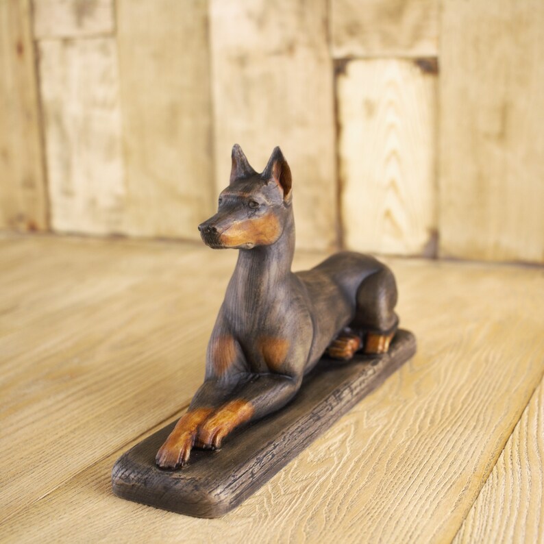 Hand Carved Doberman Dog Statue Wood Etsy Wood statues, Carved wood Doberman Art Deco Sculpture Golden doberman dog statue 78cm big limited luxury home decor sculpture ornament Sitting doberman geometric figurine,modern animal statue,home and office decor,art dog lover unique gift (bronze effect finish) Check out our doberman sculpture selection for the very best in unique or custom, handmade pieces from our sculpture shops. Doberman art statue, outdoor garden decor, home decor sculpture dog small art. Doberman Art Deco Sculpture.