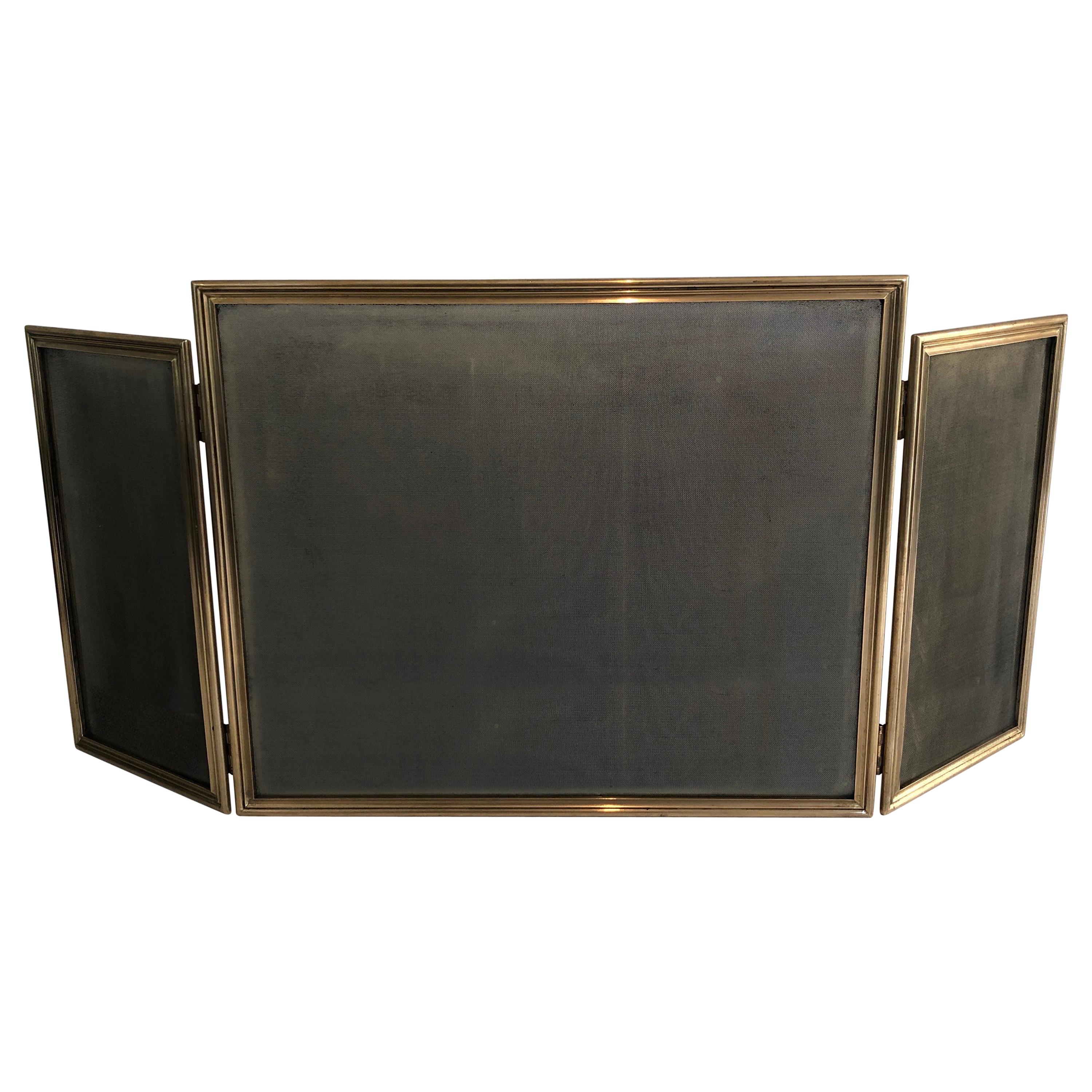 Beveled Glass and Brass TriFold Fireplace Screen at 1stDibs