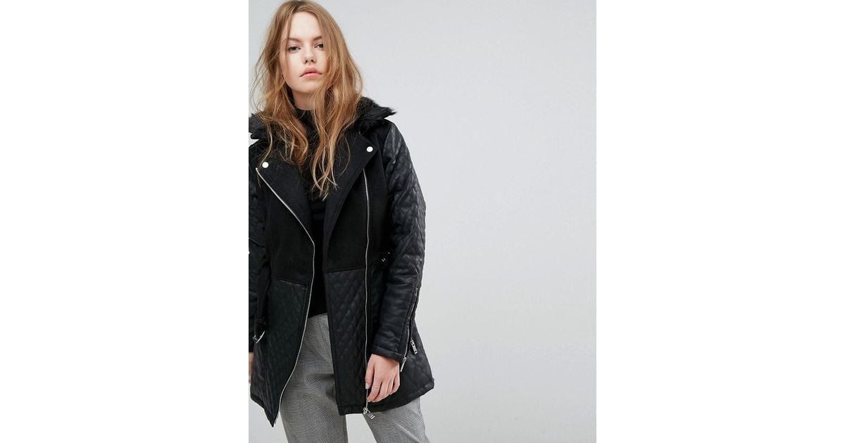 New Look Quilted Longline Biker Jacket in Black Lyst