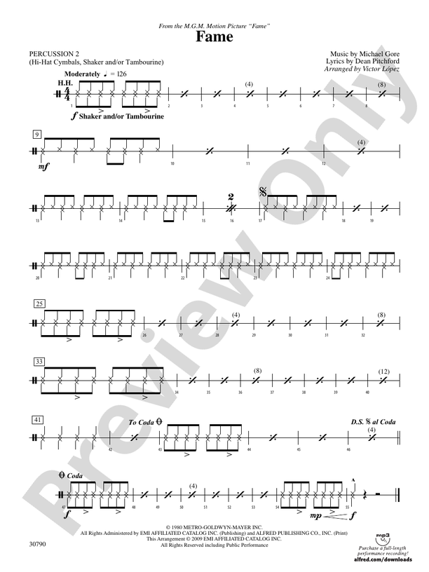 Fame (from the motion picture Fame) 2nd Percussion 2nd Percussion