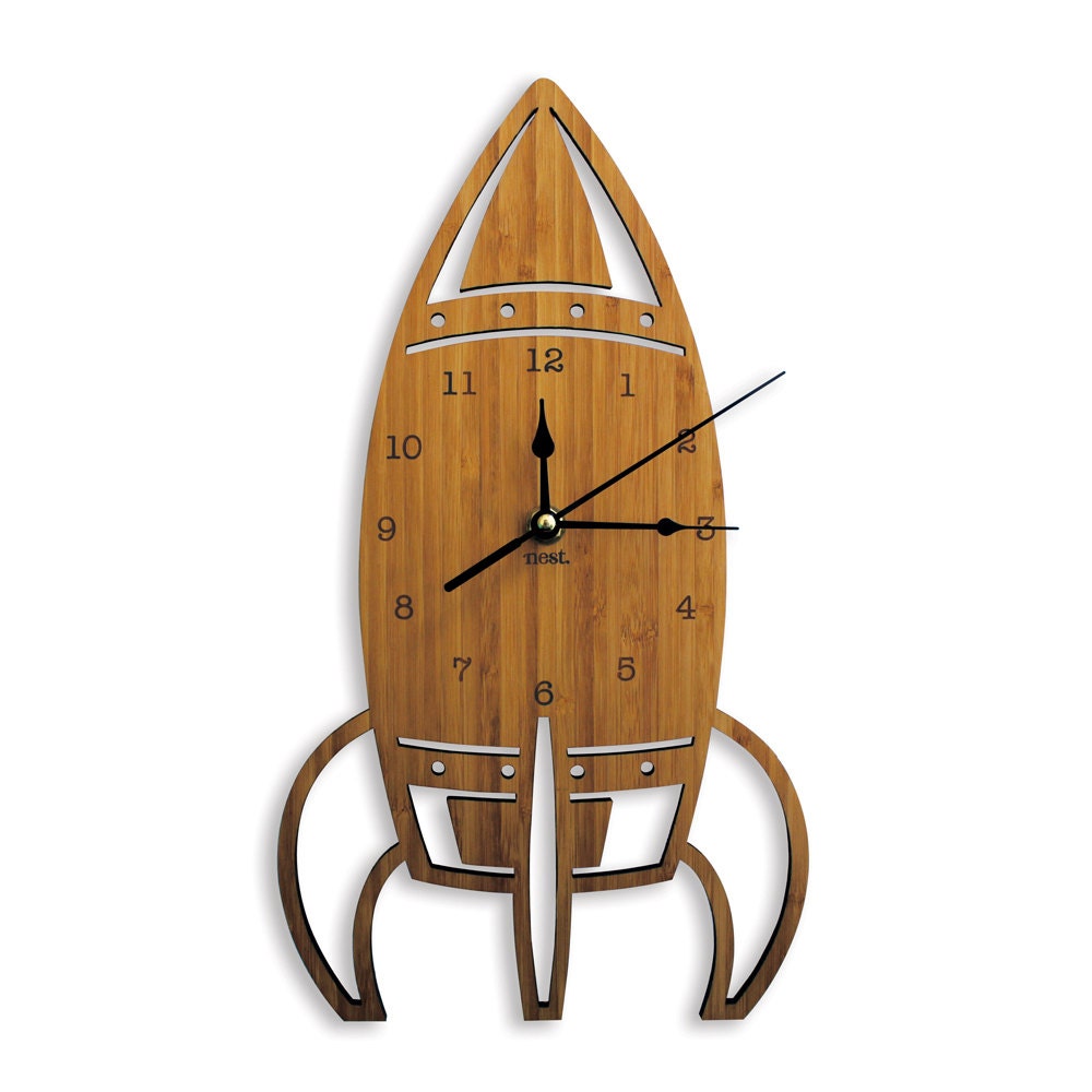 Rocket Wooden Wall Clock Space Laser cut by NestAccessories