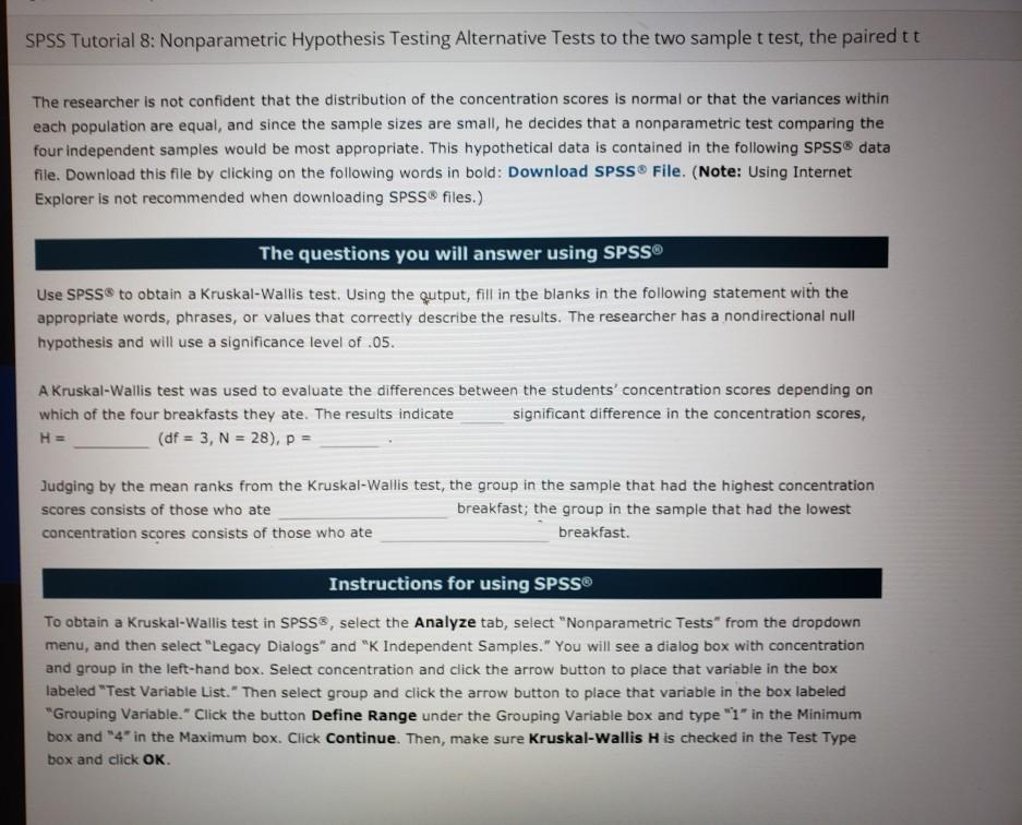 Solved SPSS Tutorial 8 Nonparametric Hypothesis Testing