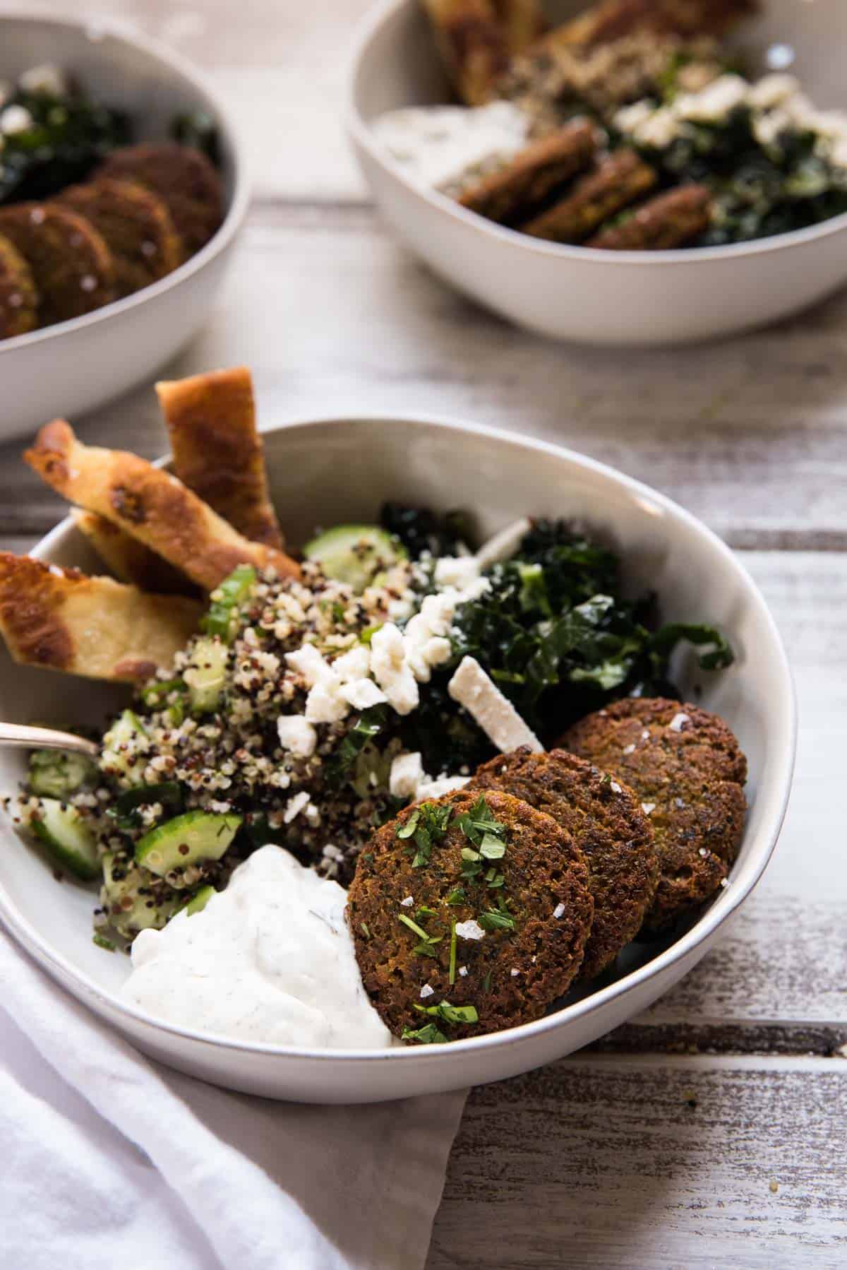 Baked Falafel Quinoa Bowls Hunger Thirst Play