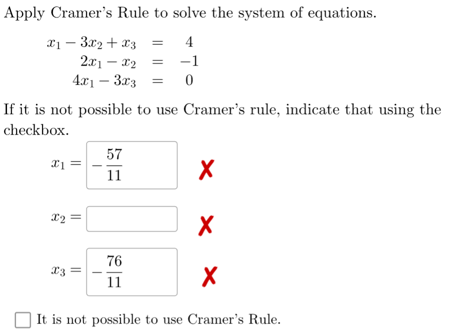 Solved Can Cramer's rule be used to solve this system of Use Cramer's Rule To Compute The Solution Of The System Cramer’s rule is a viable and efficient method for finding solutions to systems with an arbitrary number of unknowns, provided that we have the. Cramer’s rule is a viable and efficient method for finding solutions to systems with an arbitrary number of unknowns, provided that we have the. To solve a system of linear equations using cramer's rule algorithm you. Use Cramer's Rule To Compute The Solution Of The System.