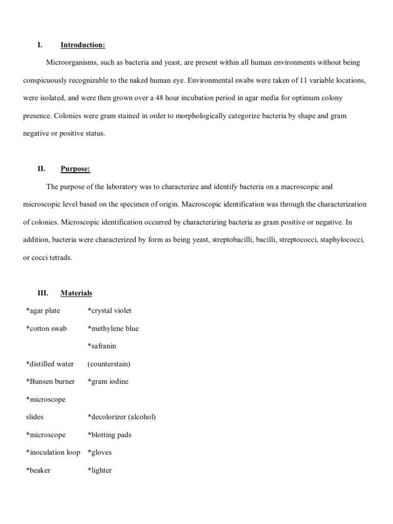 (DOC) Gram Negative Unknown Lab Report 31 Diana Monroe Academia.edu Bacteria Microbiology Lab Report Example 17 bacteria, 2 yeast, and 1 protozoan. The words in your report must. If a number starts a sentence spell out the number, do not use a. how to write an unknown lab report in microbiology. instructions for writing unknown bacterial species identification project report. Aureus) on an agar plate to observe the. this handout will show. Bacteria Microbiology Lab Report Example.