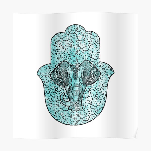 "Elephant Hamsa Hand turquoise" Poster for Sale by maryedenoa Redbubble