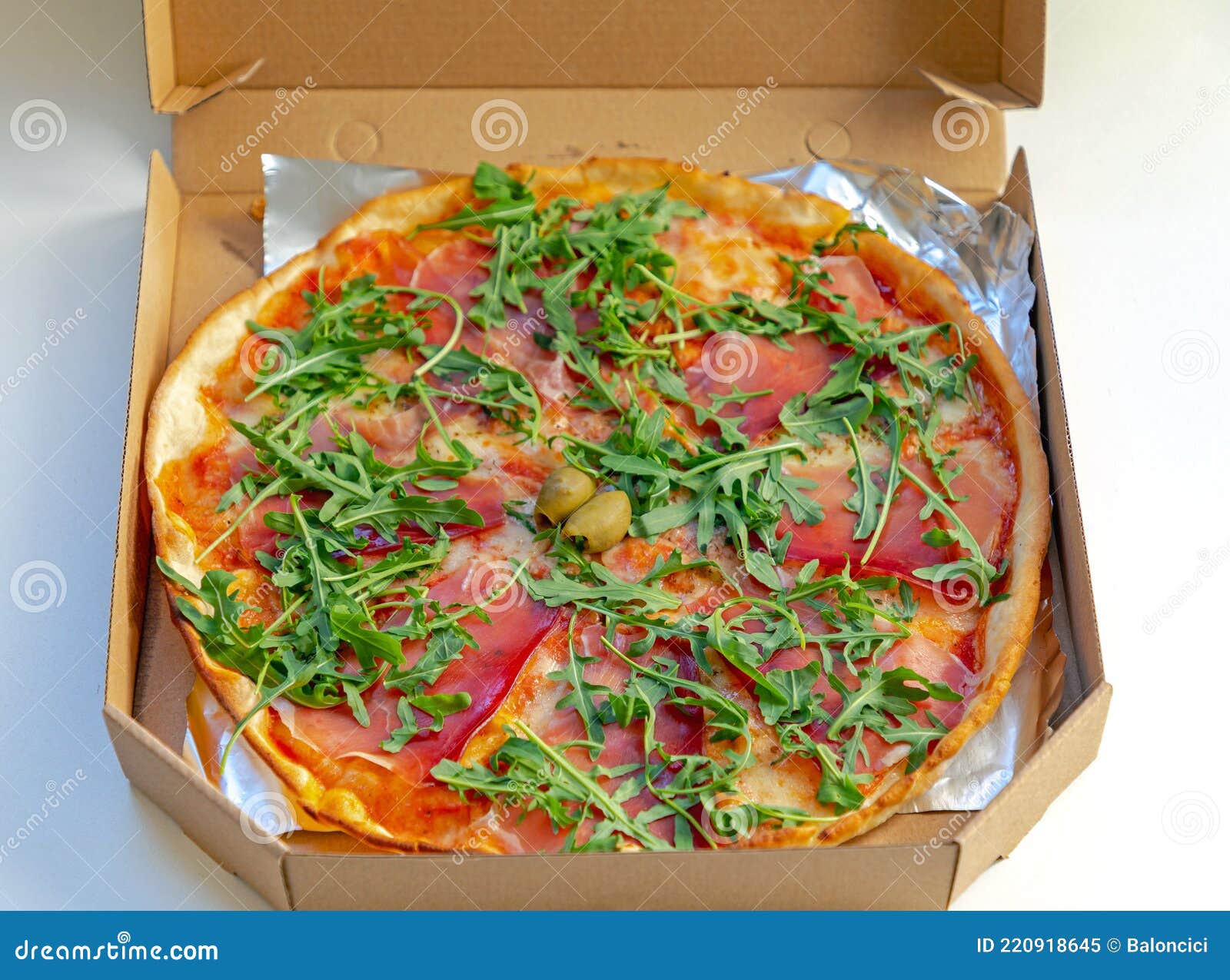 Gluten Free Pizza Box stock image. Image of arugula 220918645