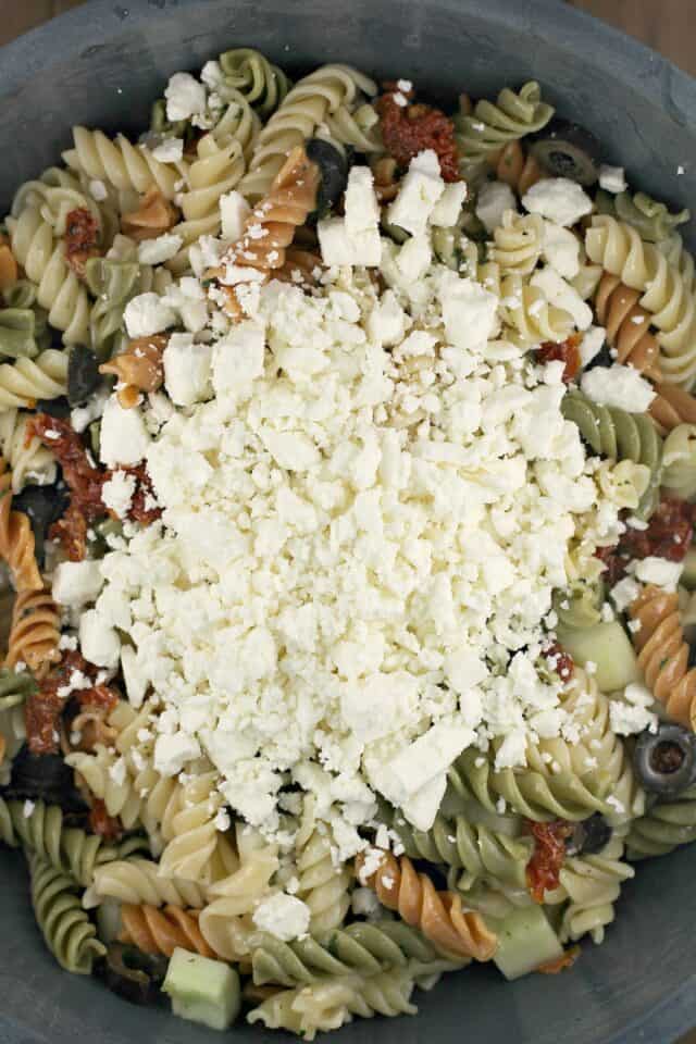 Delicious Rotini Spinach Feta Salad Rotini Pasta Salad With Spinach Easy spinach tortellini salad, loaded with with fresh herbs, tomatoes, mozzarella, and olives, and tossed in a simple homemade italian dressing. This spinach pasta salad is a tangy, garlicky, peppery pasta salad that i can’t seem to stop making and eating on repeat. Leftovers will make a great lunch the next day! This easy rotini pasta salad is a classic. Rotini Pasta Salad With Spinach.