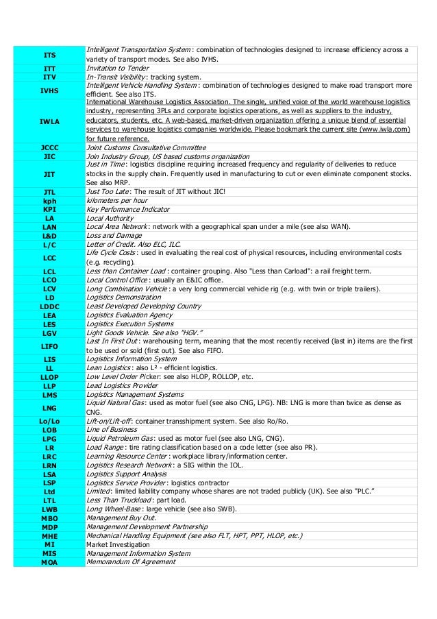 Logistics abbreviation usa terms