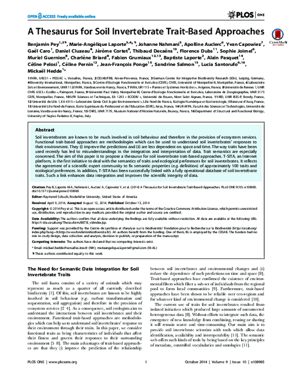 (PDF) A thesaurus for soil invertebrate traitbased approaches Gaël