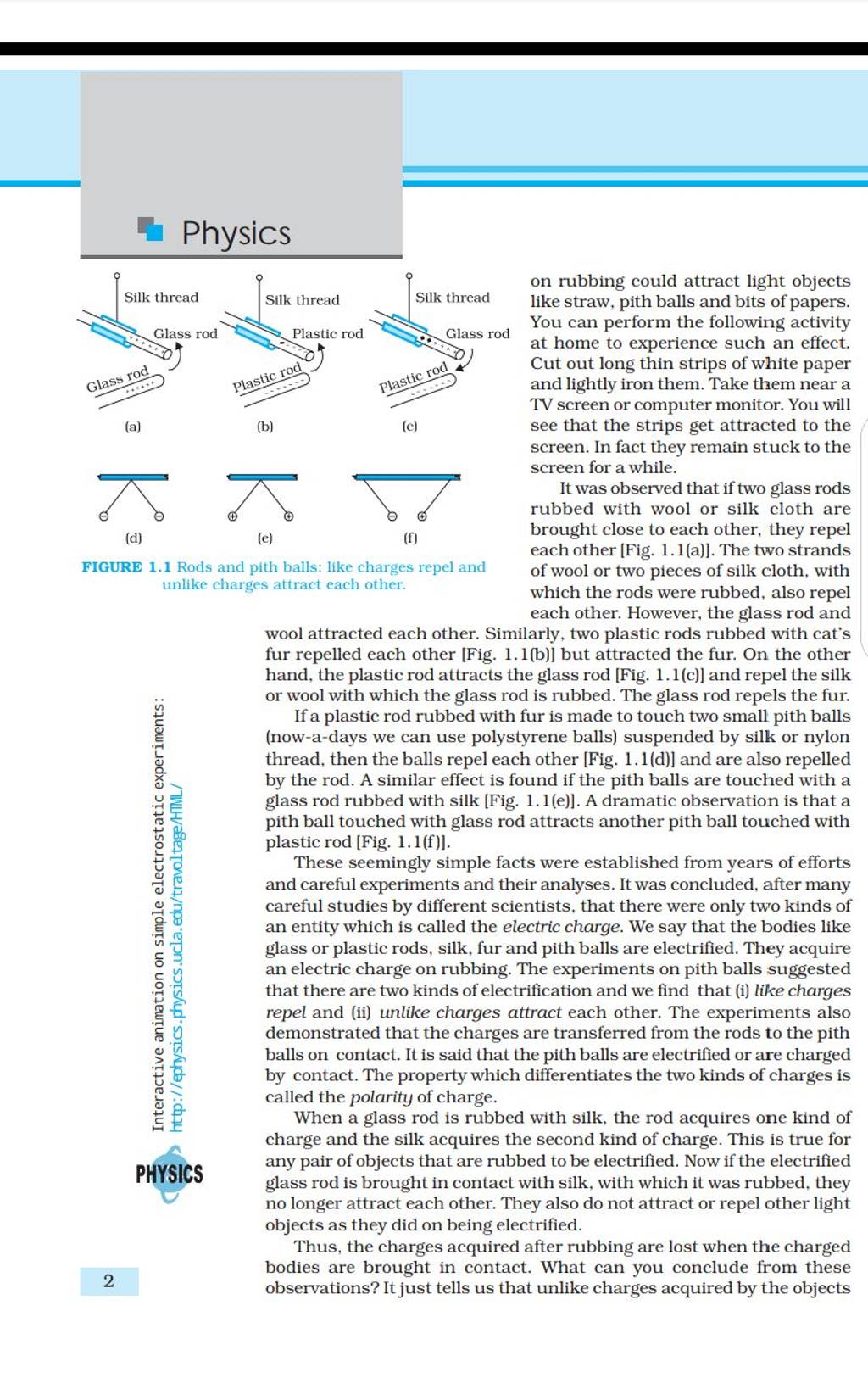 FIGURE 1.1 Rods and pith balls like charges repel and each other [Fig.