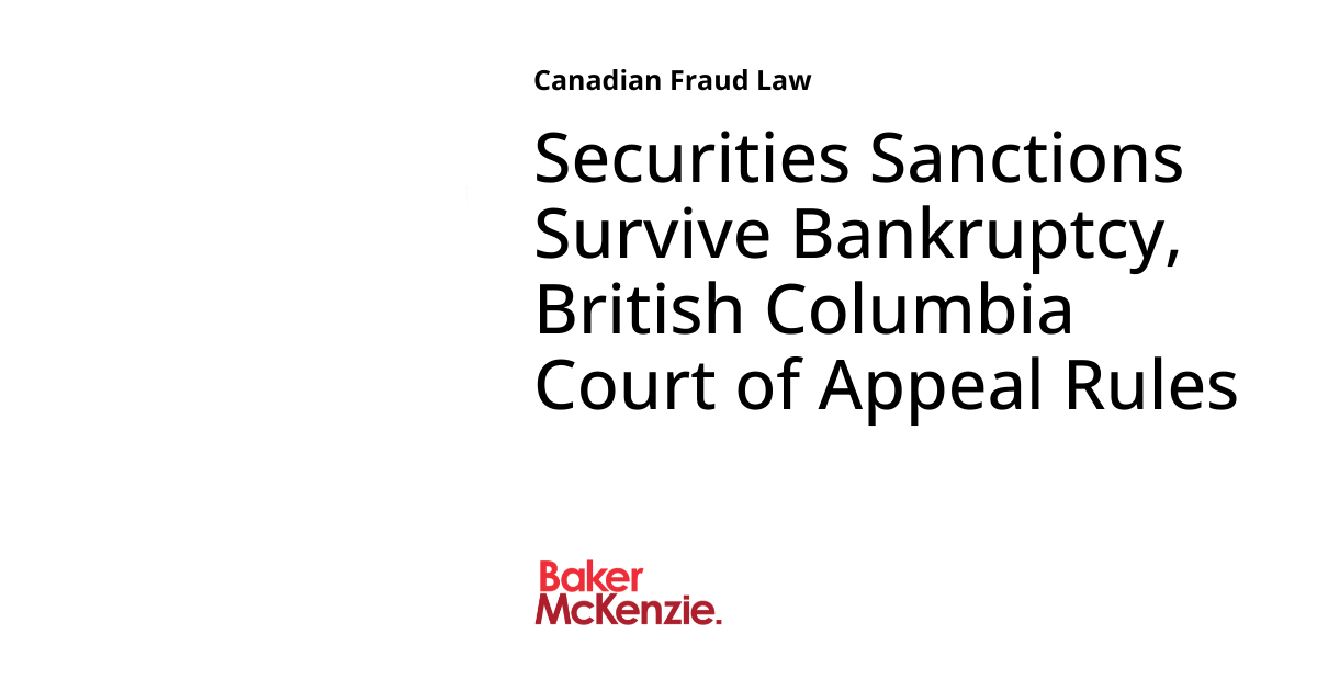 Securities Sanctions Survive Bankruptcy, British Columbia Court of