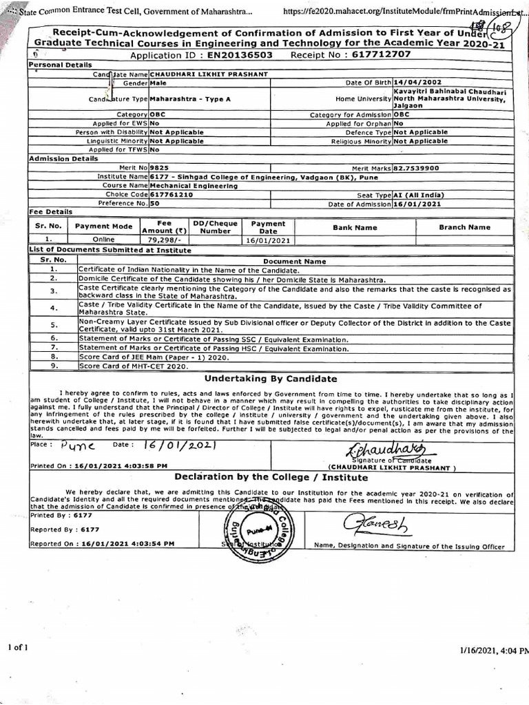 CAP Allotment Letter PDF