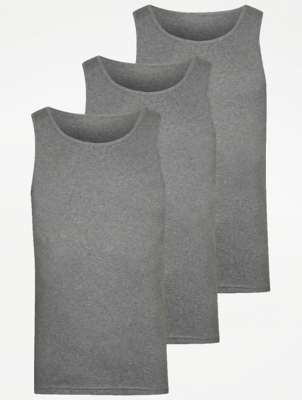 Grey Marl Vest Tops 3 Pack Men at ASDA