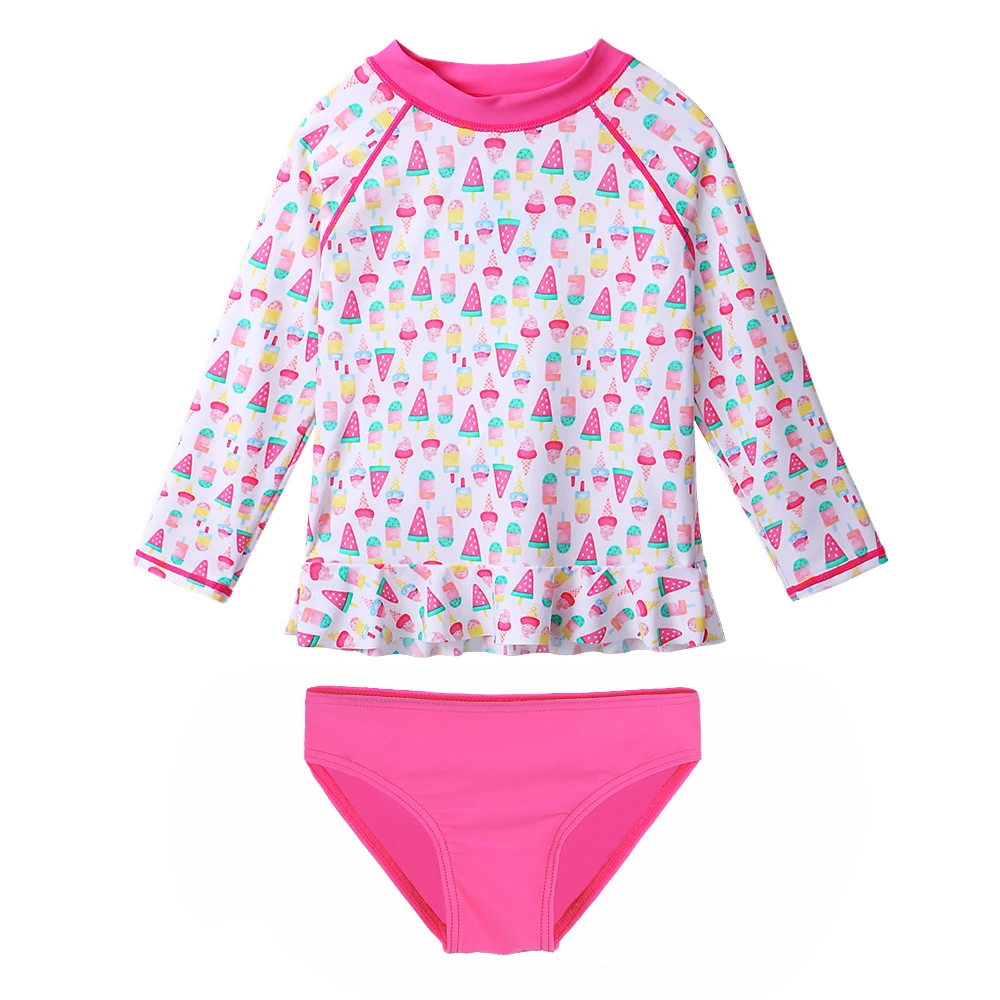 BAOHULU UPF50+ Ice Cream Long Sleeves Baby Swimwear Two Pieces Girls